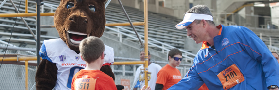 Racers are challenged to beat Boise State University head football coach Chris Petersen to the finish line while benefiting deserving students.